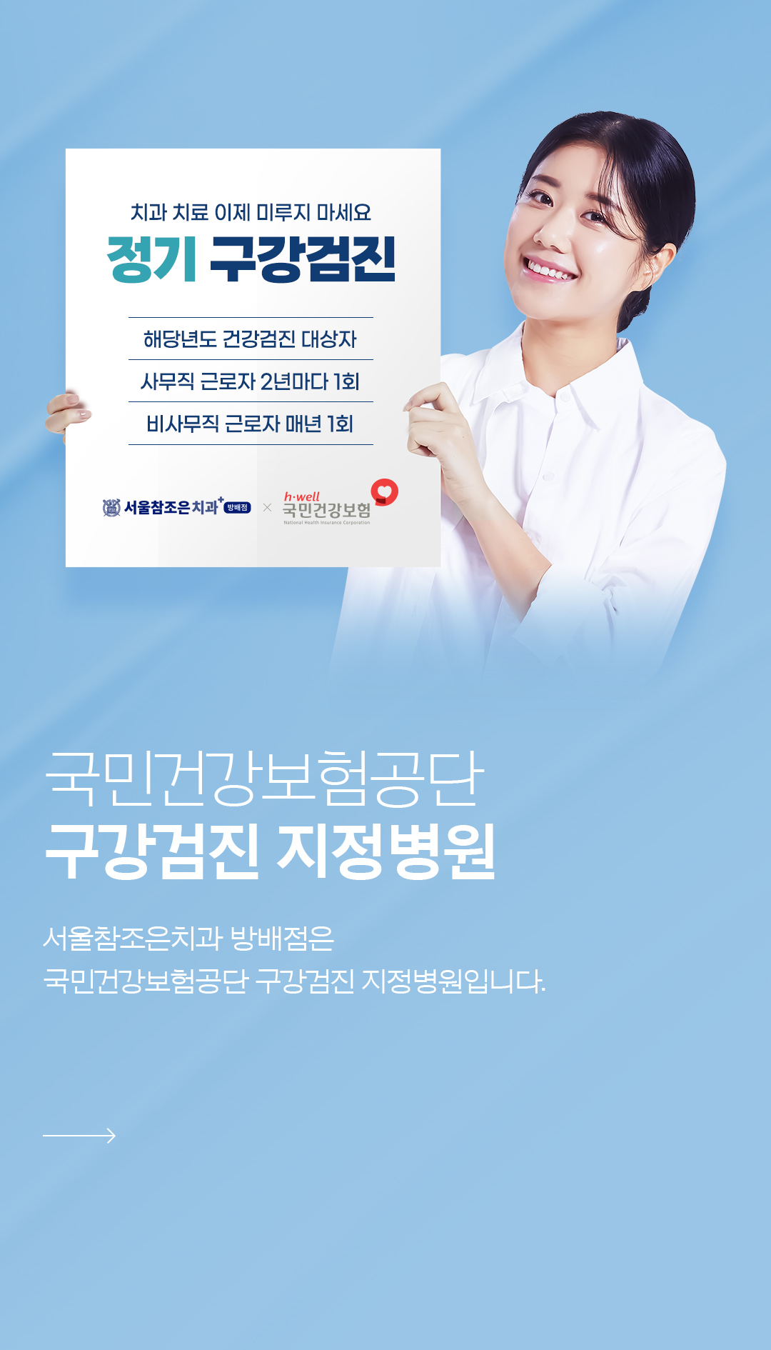 만 19세 이상 누구나 1년에 1회씩, 스케일링을 건강보험 적용 대상으로 시행하고 있습니다.